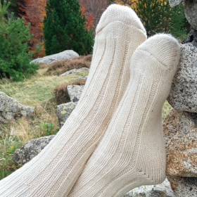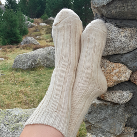 Mitjons de llana blanca 100% naturals, perfectes per a mantenir la calor a l'hivern. Proporcionen màxima comoditat i abric sense tints ni colorants, només pura llana per a una experiència càlida i natural.