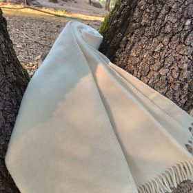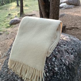 Per què triar Blanca: 100% llana sense tints • color natural amb serrells • gramatge ≈ 450 g/m² per a abric real • mesures 130 × 170 i 150 × 200 cm (opció 160 × 240 per a llit) • multiús: sofà, cotxe, viatge, plaid i decoració • peça tradicional amb elegància moderna, ideal per a regalar.