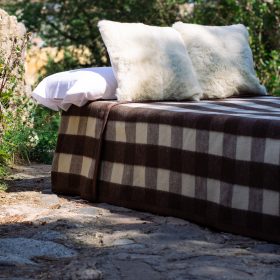 Manta de llana pura per a llit, amb un gramatge de 550 g/m² proporciona una textura densa, càlida i agradable al tacte, ideal per a combatre el fred pirinenc. Aquesta manta de quadre gran està confeccionada amb els colors naturals del vellón d'ovella: blanc i negre. La seva estètica neutra i elegant aporta valor real a l'interiorisme, sense imposar-se, integrant-se amb equilibri i sobrietat.
