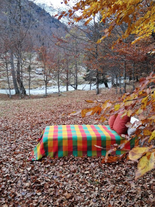 Inspirada en los colores vibrantes de los bosques del valle de Llubriqueto en otoño, esta manta recibe su nombre como homenaje a los paisajes cromáticos del Pirineo. En la temporada otoñal, el bosque se llena de vida con verdes intensos, rojos profundos, amarillos dorados y naranjas encendidos: una sinfonía natural que nos conecta con la tierra, el calor del hogar y la energía de los cambios. Se adapta a diferentes necesidades y estilos de hogar. La combinación de rojos, que evocan energía y calidez, naranjas que inspiran alegría, y verdes bosque que nos conectan con la serenidad del entorno natural, hacen de esta manta una pieza ideal para renovar tu decoración y crear un ambiente acogedor y lleno de vida.